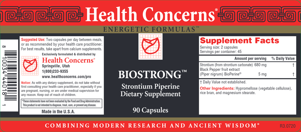 A bone support supplement using strontium to promote bone health, bone density, and joint mobility. Black pepper extract is added to enhance absorption.
