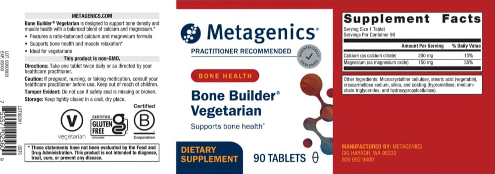 Bone Builder® Vegetarian features a ratio-balanced blend of calcium and magnesium to support bone density and muscle health. Magnesium works together with calcium to support bone health and muscle relaxation.*