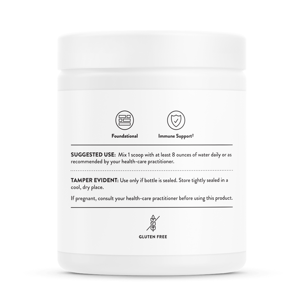 Vitamin C (ascorbic acid) is a key antioxidant, protecting cells throughout the body from free radical damage.* It also plays an integral role in the production of cellular energy, in addition to helping to maintain healthy cholesterol levels, preventing LDL oxidation, promoting wound healing, and maintaining healthy immune function.* Taking a high amount of vitamin C – several grams daily – has been advocated for optimizing both immune function and antioxidant support.* But taking a high amount can be a challenge for individuals who have a sensitive or compromised digestive system. Thorne's Buffered C Powder supplies not just vitamin C, but also calcium, magnesium, and potassium mineral-ascorbates that serve as a buffer, which allows sensitive individuals to take a larger amount of vitamin C with ease and comfort.