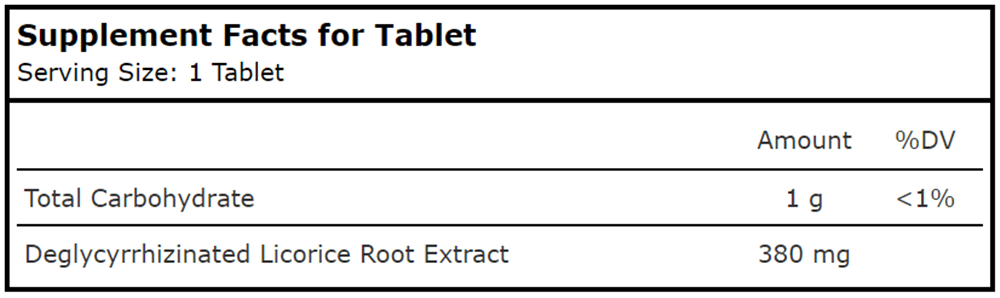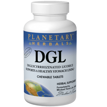 Research has shown that deglycyrrhizinated licorice supports and promotes a healthy stomach lining and intestinal flora. Glycyrrhizinic and glycyrrhetinic acids have been removed. Planetary Herbals professional strength DGL reflects dosages and preparations used in clinical studies.