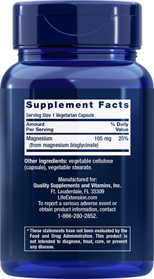 Life Extension’s Magnesium Glycinate delivers 105 mg of elemental magnesium via magnesium glycinate, a popular form of magnesium, a vital mineral involved in over 600 biochemical reactions in the human body.