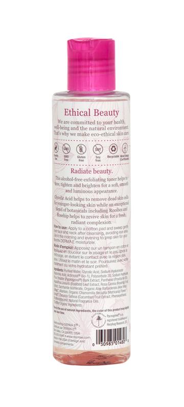 Alcohol-free, exfoliating, beauty toner with Glycolic Acid helps to tone, tighten and brighten for a soft, smooth and luminous appearance. A must-have essential for radiant-looking skin.