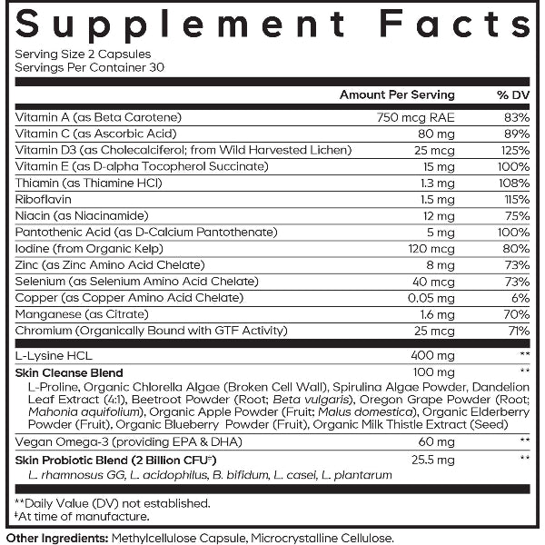 Codeage Teen Clearface is an all-in-one formula for teenagers ages 12-18 featuring vegan vitamin A as natural Beta-Carotene, vitamin C, vitamin D3 from wild-harvested lichen, and vitamin E from rice bran. This face and skin supplement features vitamins, minerals, probiotics & amino acids that can be used for all skin types including oily skin, and as part of a beauty regimen.