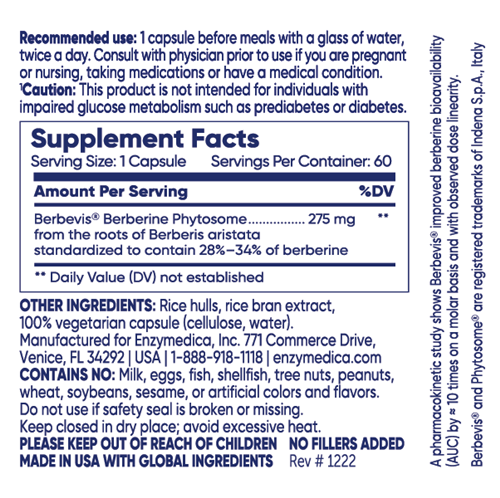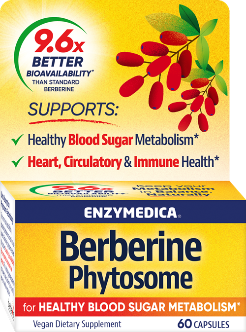 The alkaloid berberine has long been used for various health benefits. A giant leap beyond ordinary Berberine, Enzymedica’s Berberine Phytosome supports blood sugar metabolism, healthy body composition – and heart, circulatory and immune health.* We use Berbevis® Phytosome, which delivers 9.6x better absorption over standard berberine extracts.