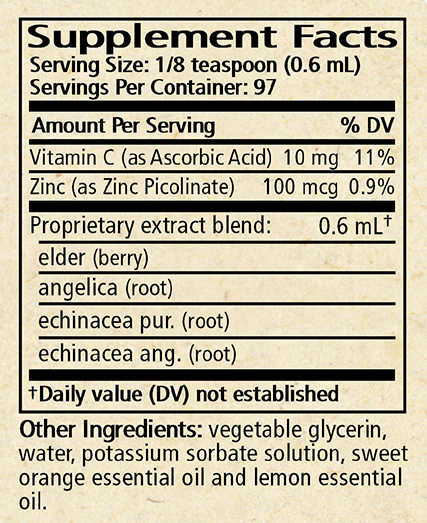 Ingredients: Elderberry in a base of vegetable glycerin. Concentration 3:1
