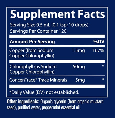 Concentrated Ionic Chlorophyll high potency 6000 mg per serving provides the therapeutic properties of chlorophyll plus a concentrated complex of full spectrum ionic trace minerals. Together, they help support healthy cells, detoxication, weight management, digestion, immunity, and body mineral balance.† Chlorophyll can help you detoxify your body- Chlorophyll has shown in studies to be an effective antioxidant. These studies found a noticeable difference of 55% in free radical activity as compared to a placebo.* Trace Minerals guarantees that you will love this product- Trace Minerals is so confident that you will love this product, that we are willing to guarantee it.