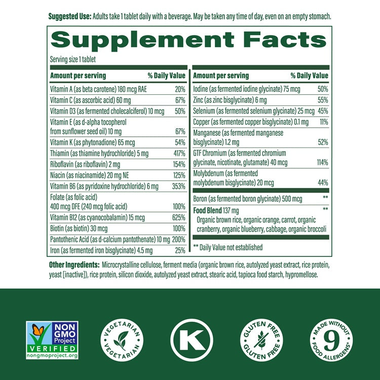Looking to boost an already well-balanced lifestyle? MegaFood® One Daily is Megafood's signature, once-daily multi, designed for anyone who wants to support their optimal health and wellbeing.* A nourishing blend of FoodState Nutrients™ - vitamins and minerals delivered with real, whole foods, including orange, carrot, rice, and nutritional yeast - can be taken any time of the day, even on an empty stomach.