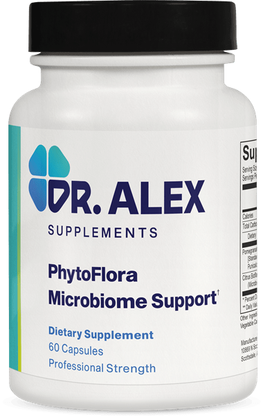 PhytoFlora Microbiome Support is a plant nutrient prebiotic formula that provides flavonoid-rich polyphenols from pomegranate and citrus to promote a healthy gut microbiota composition while protecting the gut mucosal barrier and enhancing gut immunity.