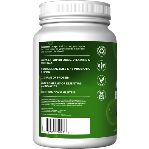 Veggie Meal also provides eight grams of fiber per serving, and is rich in omega-3, containing 32 mg combined of Docosahexaenoic Acid (DHA) and Eicosapentaenoic Acid (EPA), along with 1.4 g Alpha-Linoleic Acid (ALA) per serving.