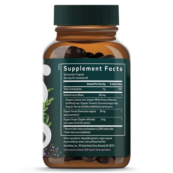 Relieves occasional discomfort and cramps associated with menstrual cycles* White Peony and Licorice helps to relax the uterus and supports hormone balance* Relieves cramps before and during your cycle. Fennel helps with menstrual pain.