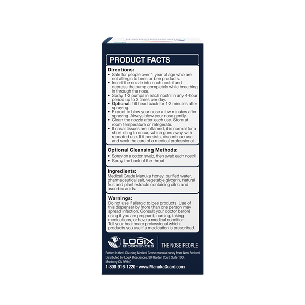 The cleansing and moisturizing action of Medical Grade Mānuka honey is documented in peer-reviewed, published research. ManukaGuard’s Nasal Sprays are formulated to deliver the optimal amount of honey in a fine mist.