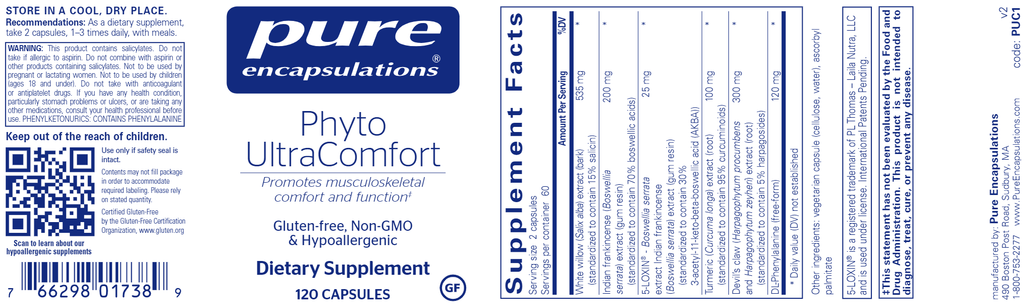 Phyto UltraComfort helps reduce occasional, minor pain by supporting healthy enzyme and immune mediator activities.