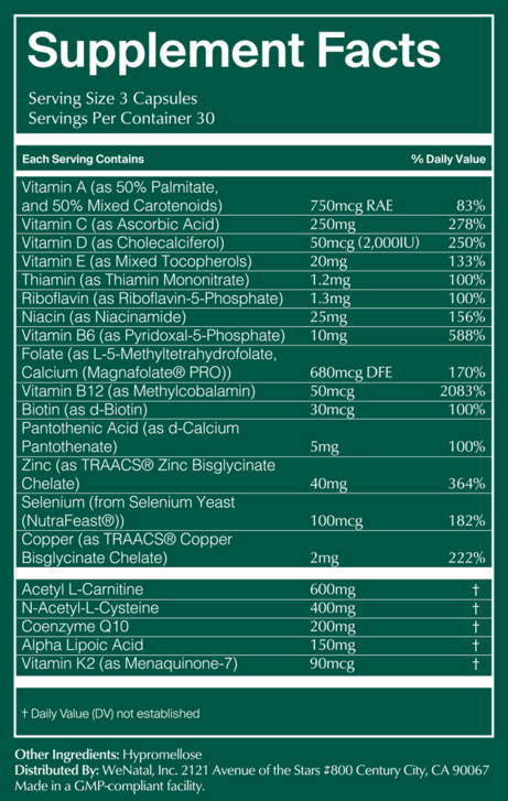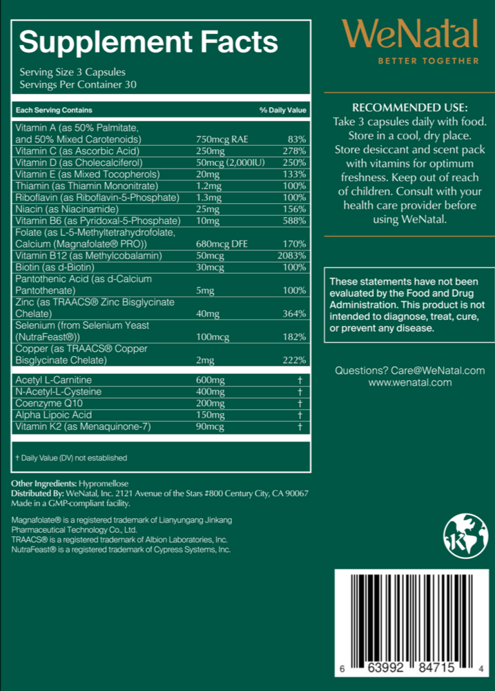 WeNatal is non-GMO and free of fillers, colors, gluten, dairy, soy, and nuts.