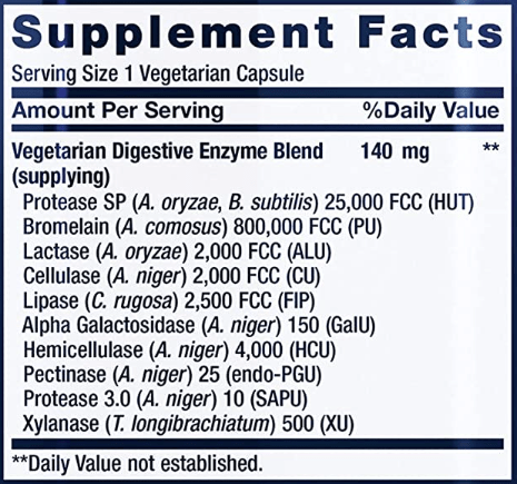 Enhanced Super Digestive Enzymes contains 10 vegetarian-friendly enzymes. It helps break down foods like protein, dairy and fat—but is primarily formulated to support people on plant-based diets.