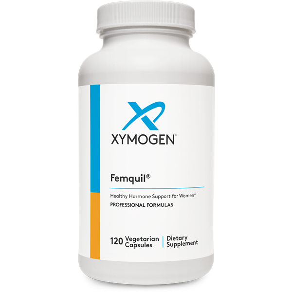 Femquil® delivers biologically active folate and other key methylation vitamins in combination with a targeted blend of ingredients to encourage hormone balance, help modify xenoestrogen activity, and restore tranquility. Vitex and black cohosh provide traditional hormone-balancing support; DIM and calcium D-glucarate promote estrogen detoxification; and rosemary, resveratrol, grape seed extract, and green tea extract provide antioxidant activity.*