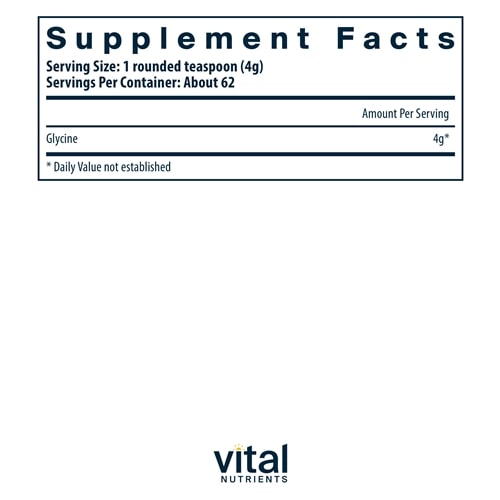 Glycine is an essential amino acid found in many protein-rich food sources. It plays a critical role in supporting natural detoxification as a precursor to Glutathione, a vital intracellular antioxidant involved in liver detoxification processes.* Glycine supports the healthy functioning of the nervous system and helps alleviate mild memory issues related to aging.* It activates brain receptors that are important for neural development, learning, and cognition.* As a major inhibitory neurotransmitter, Glycine aids in promoting relaxation and managing stress effectively.* Clinical studies suggest that taking Glycine before bedtime can enhance sleep quality and reduce fatigue.* Note: Glycine should not be taken with clozapine.
