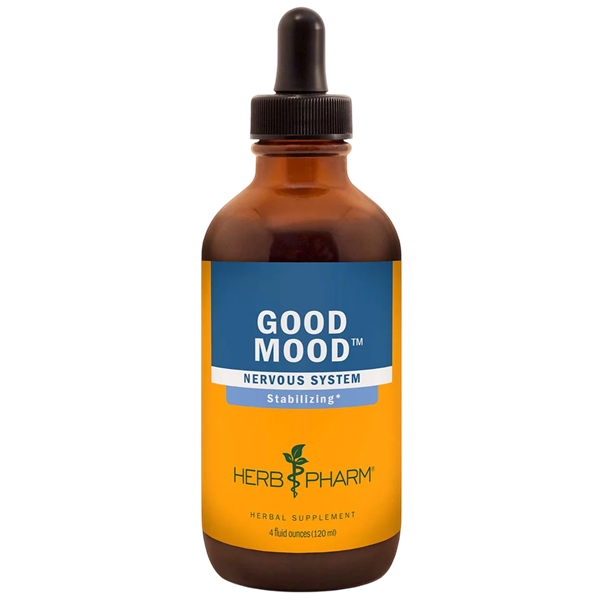 Good Mood features St. John’s Wort (Hypericum perforatum) responsibly wildcrafted in Oregon’s Siskiyou and Cascade mountains and extracted fresh each summer near the solstice. It also features Skullcap, prepared from fresh (never dried) Scutellaria lateriflora plants grown on our own Certified Organic farms in southern Oregon.