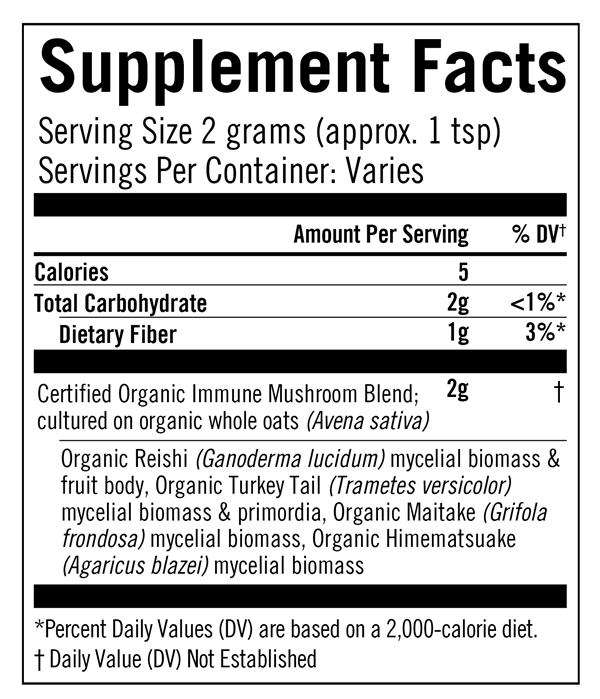 Get your “fight on” with Om's blend of 4 unique species of organic mushrooms creating a synergy of immune benefits. Harness your natural defense with powerful beta glucans, digestive enzymes, fiber, prebiotics, antioxidants and other nutrients to keep your body battle ready.*