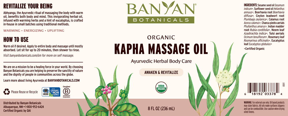 Full body massage with warm herbal oil is one of Ayurveda's most beloved self-care rituals. Created with a blend of invigorating herbs that balance kapha dosha, this massage oil helps to energize the body, awaken the mind, and revitalize the tissues.