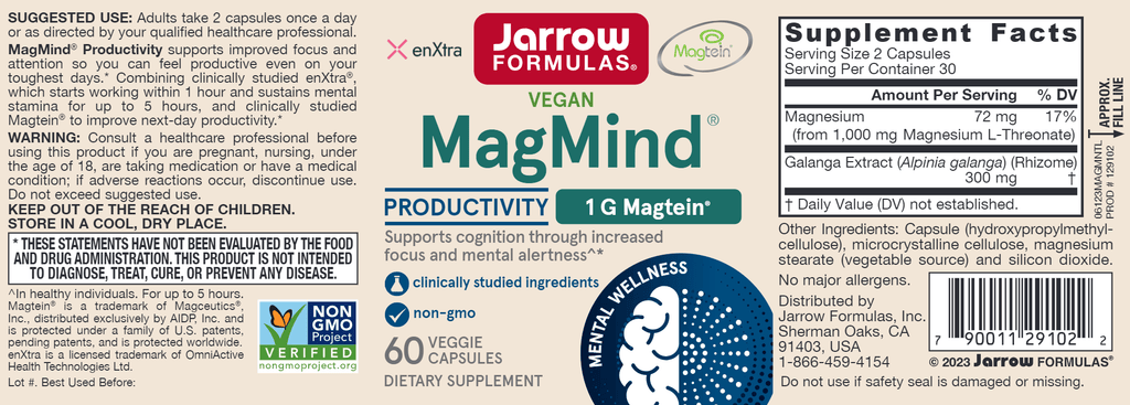 MagMind® Productivity supports improved focus and attention so you can feel productive even on your toughest days.* Combining clinically studied enXtra®, which starts working within 1 hour and sustains mental stamina for up to 5 hours, and clinically studied Magtein® to improve next-day productivity.*