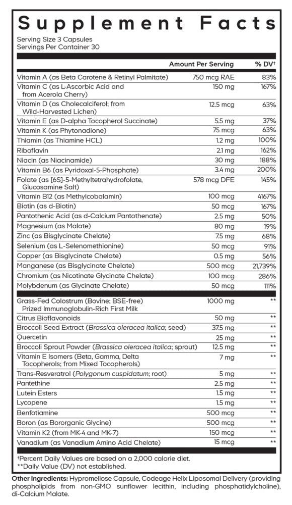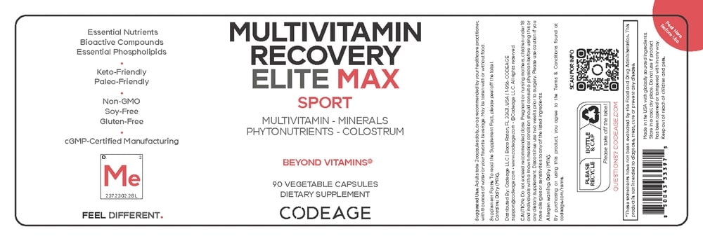 Upgrade your post-workout recovery with Codeage Multivitamin Recovery Elite Max. Custom-designed for athletes and fitness enthusiasts, this premier sports multivitamin is packed with a curated blend of vitamins, minerals, grass-fed colostrum, antioxidants, and phytonutrients, all encapsulated for convenient consumption.