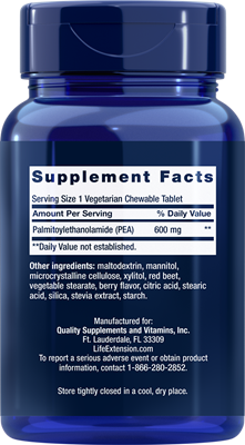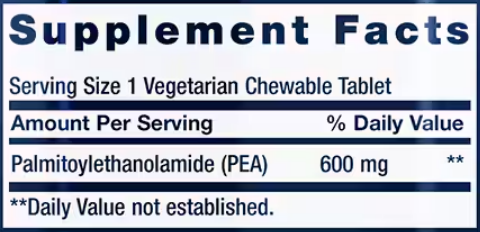 Discomfort Relief provides the benefits of 600 mg of PEA (palmitoylethanolamide) in a convenient, berry-flavored chewable tablet.
