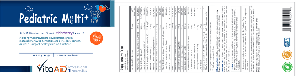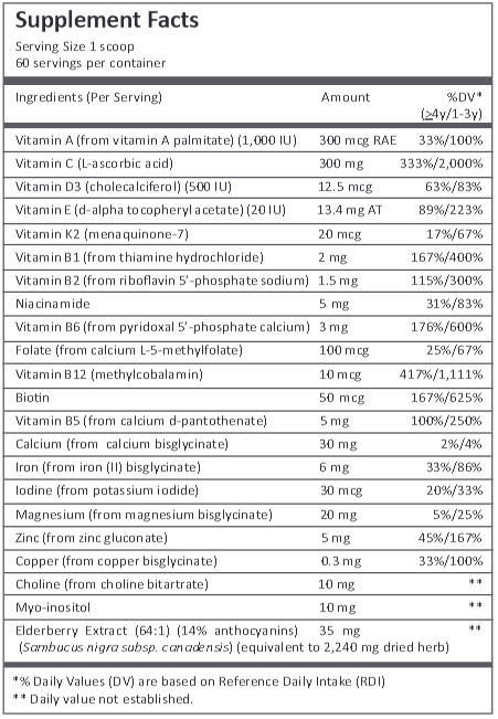 Kid's multi-vitamin/mineral with certified organic Elderberry.