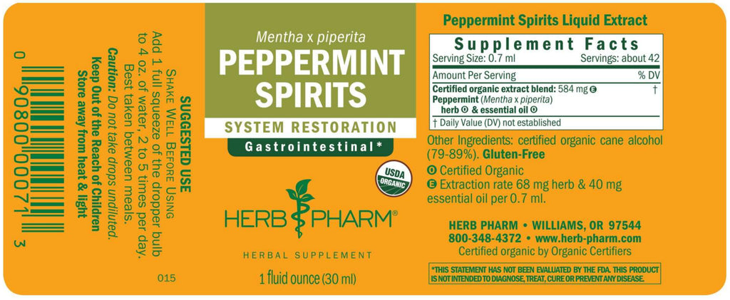 Peppermint Spirits is a proprietary blend of Peppermint leaf extract and essential oil. Both are prepared from Certified Organic Mentha x piperita plants.