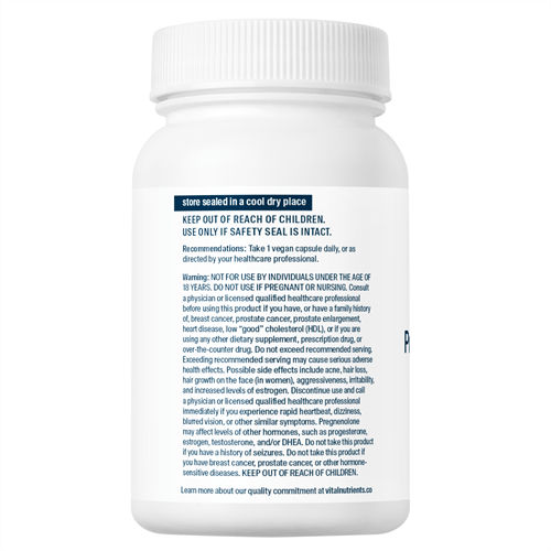 Pregnenolone is synthesized in the body from cholesterol and is the precursor for all the steroid hormones, including progesterone, aldosterone, cortisol, dehydroepiandrosterone (DHEA), testosterone, and estrogens.* The endogenous production of Pregnenolone begins to decline after age 35.* Supplementation with Pregnenolone helps support mood, well-being, memory, and immune function.* It has been suggested that this hormone may play a role in the neuroendocrine response to stress.*