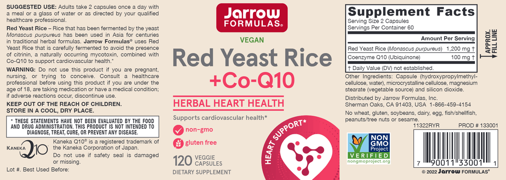 Red Yeast Rice – Rice that has been fermented by the yeast Monascus purpureus – has been used in Asia for centuries as a food preservative, food colorant and flavoring, as well as in traditional herbal formulas. Jarrow Formulas® uses Red Yeast Rice that is carefully fermented to avoid the presence of citrinin, a naturally occurring mycotoxin.