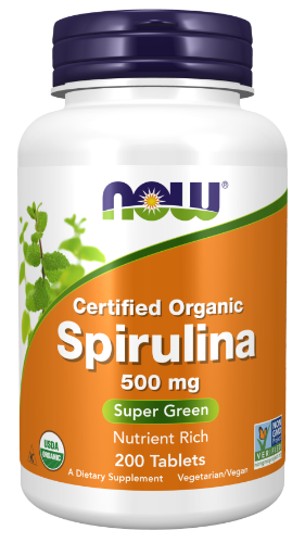 Spirulina is a blue-green microalgae that has naturally occurring protein, plus other nutrients such as vitamins, minerals and GLA (gamma-linolenic acid). NOW® Certified Organic Spirulina Tablets are pure and contain no excipients, binders, or additives.