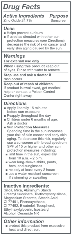 Inactive ingredients: Silica, Mica, Aluminum Starch Octenyl Succinate, Triethoxyoctylsilane, Magnesium Stearate, Stearic Acid, CI 77491, Phenoxyethanol, CI 77492, Bisabolol, Tocopherol, Ethylhexylglycerin, Isostearyl Alcohol, Ceramide NP