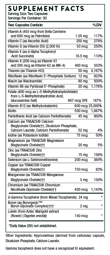 A comprehensive daily multi- with key nutrients that keep your body healthy and thriving. Designed for individuals who want nutritional support with fewer capsules.