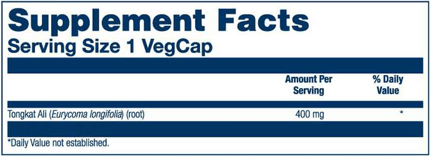 Grown from the sun and rich soil of its native Southeast Asia, generations of men have turned to this ancient root looking to support vitality, endurance and drive. A reputed adaptogenic, tongkat ali is thought to help the body adapt to occasional stress and may have a centering effect to help you stay focused and feel great doing it. Taken regularly, it may help boost energy levels, support healthy muscle and may help enhance your performance at the gym, at work, and in your personal life. Solaray Tongkat Ali Root provides 400mg of the whole root for greater benefit. Plus like all our products, it's lab tested for purity, potency and quality to help you find that youthful glow!