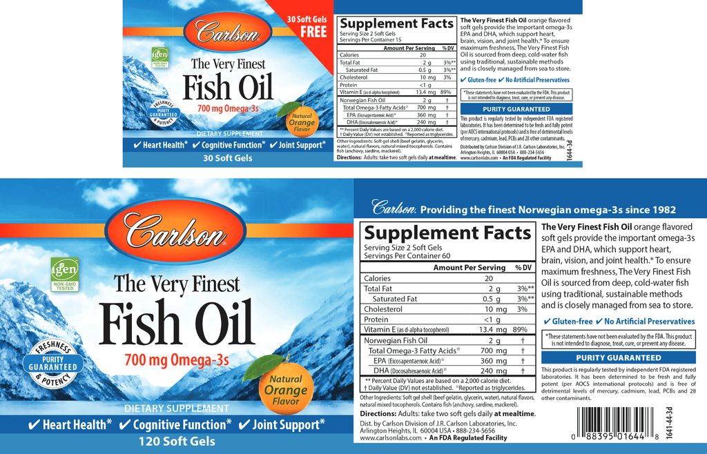 The Very Finest Fish Oil provides 700 mg of omega-3s per serving. Fish oil provides the important omega-3s EPA and DHA which offer many health benefits, such as promoting heart, brain, vision, and joint health. To ensure maximum freshness, The Very Finest Fish Oil is closely managed from sea to store. We source the highest quality, deep, cold-water fish using traditional, sustainable methods. And like all Carlson omega-3s, freshness, potency, and purity are guaranteed.