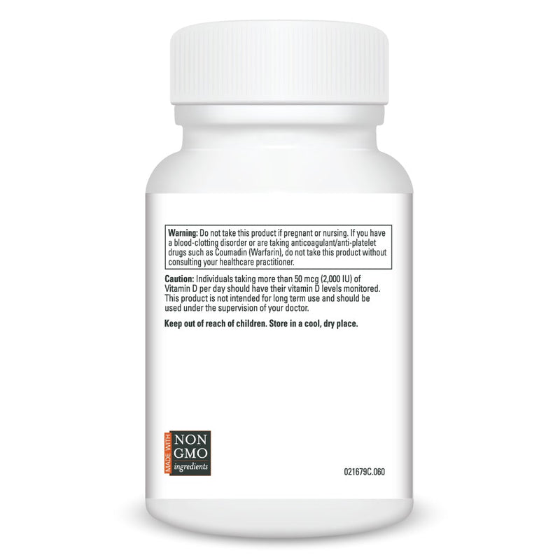 Vitamin D3 (cholecalciferol) is a fat-soluble vitamin that is essential for maintaining normal calcium metabolism. It supports calcium absorption in the gut and helps maintain adequate serum calcium and phosphate concentrations to enable normal mineralization of bone.* Vitamin D3 is also needed for proper bone growth and bone remodeling by osteoblasts and osteoclasts.* Without sufficient Vitamin D, bones can become thin, brittle, or misshapen. Research shows that K2 partners with Vitamin D3 to inhibit the production of osteoclast cells (cells that break down bone) in order to help bone-building osteoblasts catch up to maintain a healthy balance.* Vitamin D3 also supports cardiovascular function and blood pressure within normal ranges.* It impacts heart health by supporting the body’s natural cytokine production and