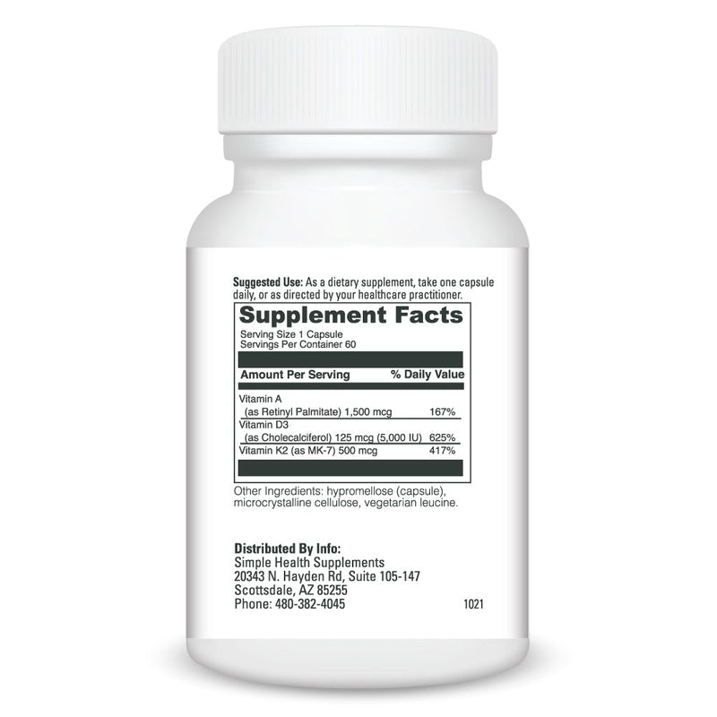 Vitamins A, D, and K2 (as MK-7) supports: