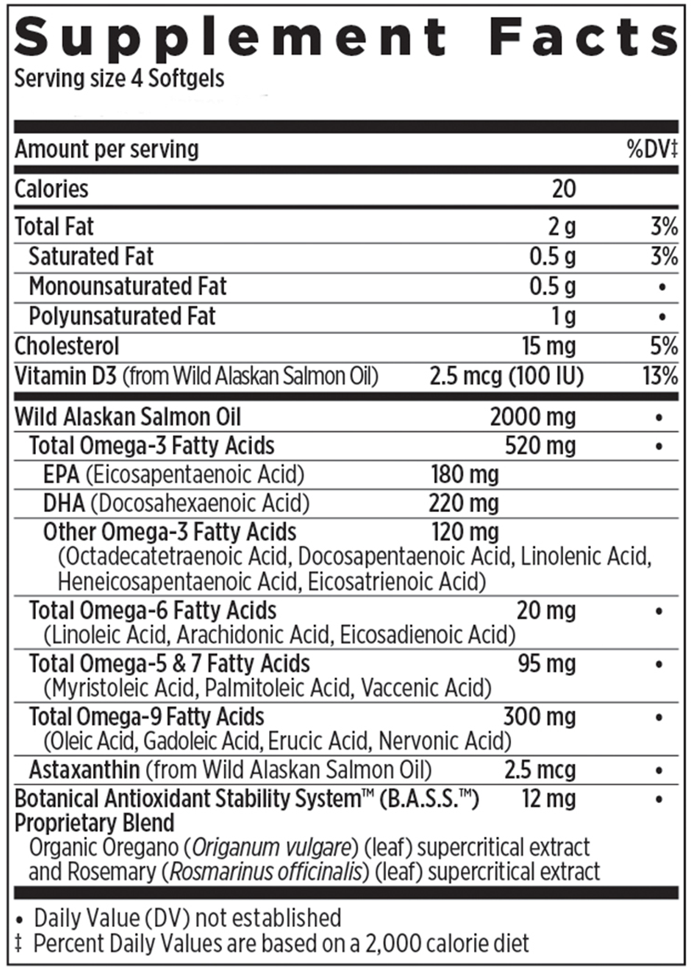 Contains: 100% Wild Alaskan Salmon Fish Oil.