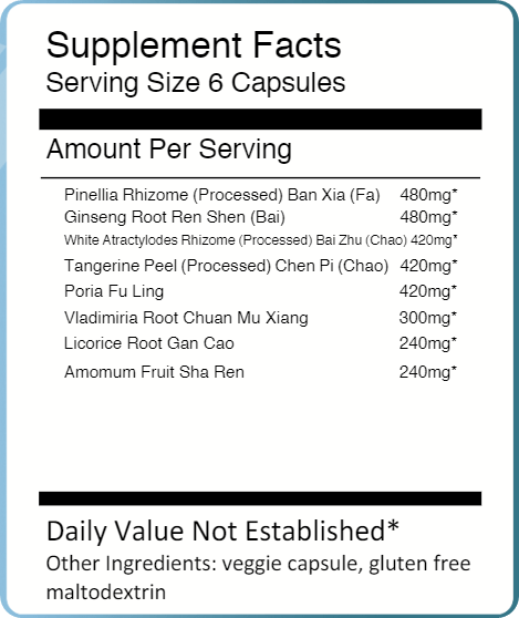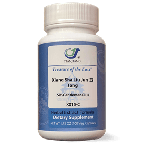 Xiang Sha Liu Jun Zi Tang is a classical formula that is designed for spleen Qi deficiency with phlegm damp, stomach Qi deficiency, stomach pain due to coldness. Marked by nausea, sallow complexion, weak abdomen, belching, abdominal distention, pale lips, tired limbs, chest fullness, acid regurgitation, muscle weakness in arms and legs, and low, soft voice – as though the person does not want to speak. Also, marked by a pale, flabby or tooth marked tongue with white tongue coating and a forceless and deficient pulse.