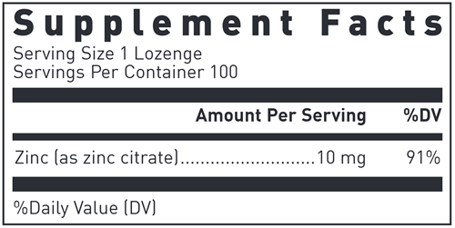 Zinc Lozenges supply bioavailable zinc, sweetened with sorbitol and flavored with natural orange extracts. Each lozenge contains 10 mg of elemental zinc in the form of zinc citrate.
