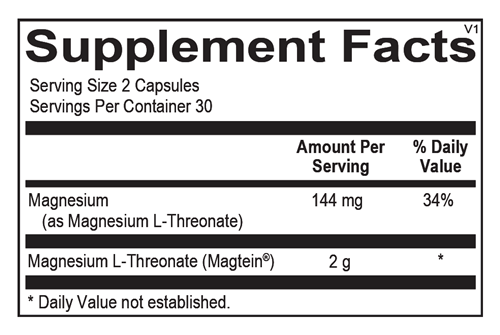 Mag Threonate provides unique, multidimensional support to promote healthy brain function including mental focus, memory, sleep and mood support. Mag Threonate delivers 2 g of concentrated magnesium L-threonate in only two capsules.