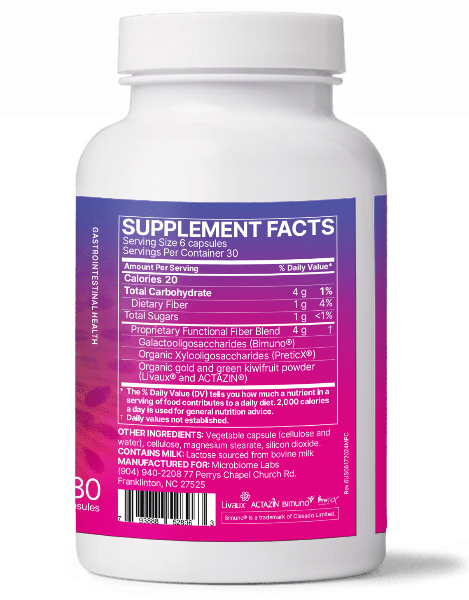 This unique blend is made up of clinically-tested-and-published, non-digestible oligosaccharides, derived from non-GMO green and gold kiwi fruit, non-GMO corn cob, and rBST-free cow’s milk, respectfully. To avoid milk and corn-derived ingredients, check out Kiwi Regularity as an Actazin-only supplement.
