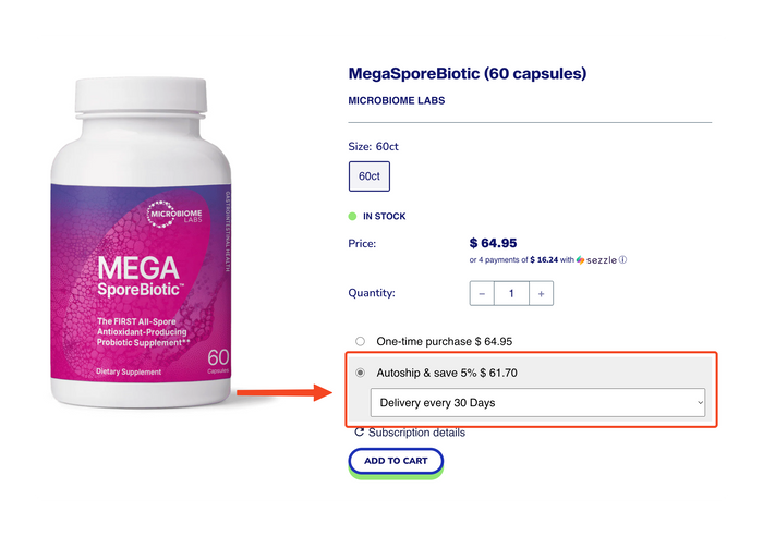 Select "Auto-Ship This Product" When Adding any Product to Your Cart