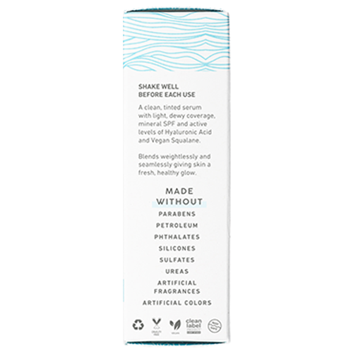 A clean, tinted serum with light, dewy coverage, mineral SPF and active levels of Hyaluronic Acid and Vegan Squalane.