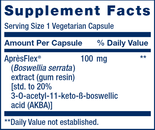 AprèsFlex® absorbs 52% more than standard boswellia extract and is standardized for the active AKBA compound.