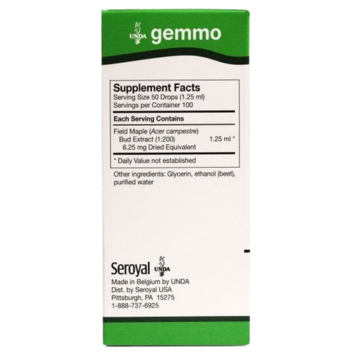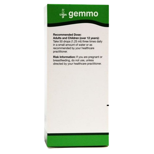 Homeopathic. Gemmotherapy uses the extracts of fresh buds, young shoots, rootlets, or saps from developing plants, where the plant's life essence is at its peak in the young growths. UNDA Gemmotherapy remedies are prepared in a natural glycerin and organic ethanol medium, which is then filtered and potentized at a 1/10th dilution (1X Hahnemannian) in a pure water, natural glycerin and organic ethanol medium. These complex remedies are macerated for increased patient compliance. This methodology captures the most complete set of highly-concentrated active constituents necessary for tissue regeneration, favorable growth development and essential drainage properties. UNDA Gemmotherapy facilitates Biotherapeutic Drainage and is an excellent adjunct to the UNDA Numbered Compounds.