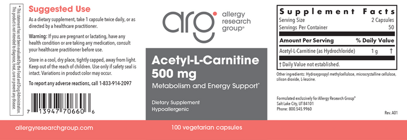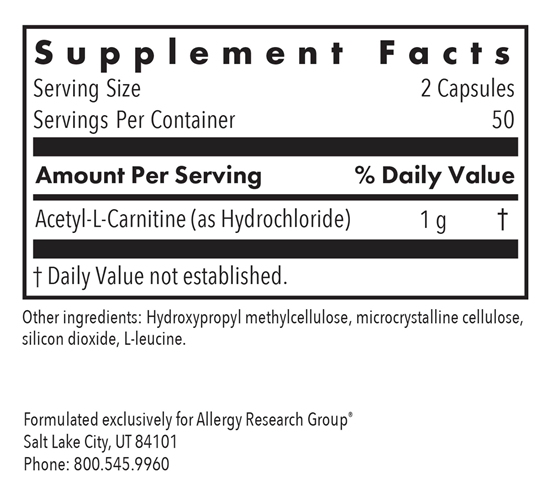 The acetyl derivative of L-carnitine. Acetyl-L-carnitine is involved in the metabolism of protein, carbohydrates and fats, as well as the conversion of fats into energy.* Acetyl-L-carnitine crosses the blood brain barrier more readily than L-carnitine. It has antioxidant properties, and supports glutathione and CoQ10 levels.* Free form amino acid, high purity, well tolerated.