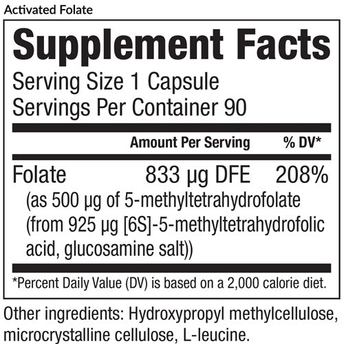 Take 1 capsule per day or as directed by your qualified healthcare professional. This product is ideally used along with our Activated B-Complex, which includes folate synergistic partners including vitamins B6 and B12.