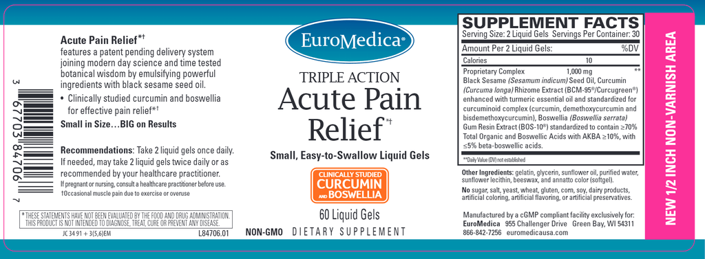 Triple Action Acute Pain Relief† features a unique delivery system that joins modern day science with time tested botanical wisdom. This new groundbreaking, clinically proven technology emulsifies powerful, clinically studied ingredients with black sesame seed oil for outstanding benefits!*