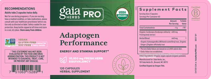 Adaptogen Performance contains a blend of traditionally used herbs and mushrooms used to keep energy levels healthy.